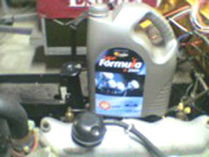Para melhor lubrificar o motor sem o ligar, coloquei o óleo directamente por cima.