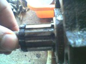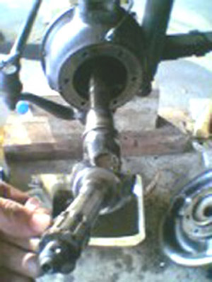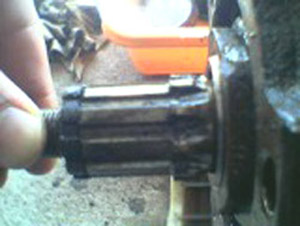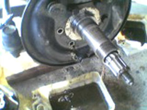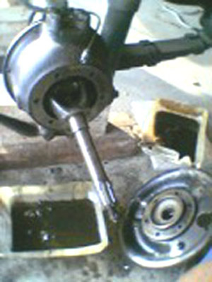 Agora basta puchar o eixo para fora. O óleo está velho pois existe alguma humidade no óleo e no eixo.
