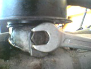 No meio fica uma grande porca dupla com uma anilha de freio (no centro). Nesta fase necessitei de uma chave sextavada interior nº 52 (é grande é!) e de um braço com força. Validar que o LR está bem apoiado é uma muito boa ideia, não vá o dito cair em cima de um pé com tanta força e abanões.