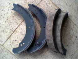 Quando se acerta o tambor dos travões, é necessário compensar a altura nos calços do travão. Na foto os meus levaram "calçado" novo. Aproveitei para pintar o conjunto.