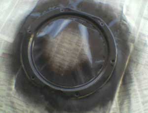 Aproveitei algumas pausas para polir a peça metálica que aperta o retentor (com escova rotativa de aço e berbequim). Depois de fria e limpa com petróleo (para desengordurar), foi pintada em três camadas com Hamerite preto. É necessário deixar secar bem. Não esquecer que o Hamerite leva oito dias até completar a reacção química. Ou seja,não colocar óleo até passarem os 8 dias.