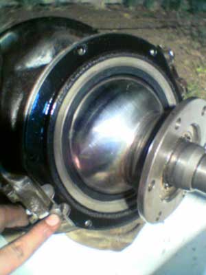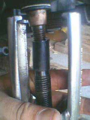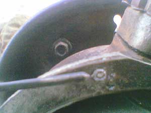 Agora era necessário retirar o retentor, e para tal foi necessário retirar a sua protecção, que estava algo ferrujenta, mas recuperável. Não correu bem pois o parafuso de fim de curso da roda partiu-se.