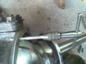 Assim a operação seguinte consistiu em retirar o parafuso. O que foi uma tarfefa complicada e penosa. Marcar o centro exacto do parafuso com um punção foi a primeira acção.